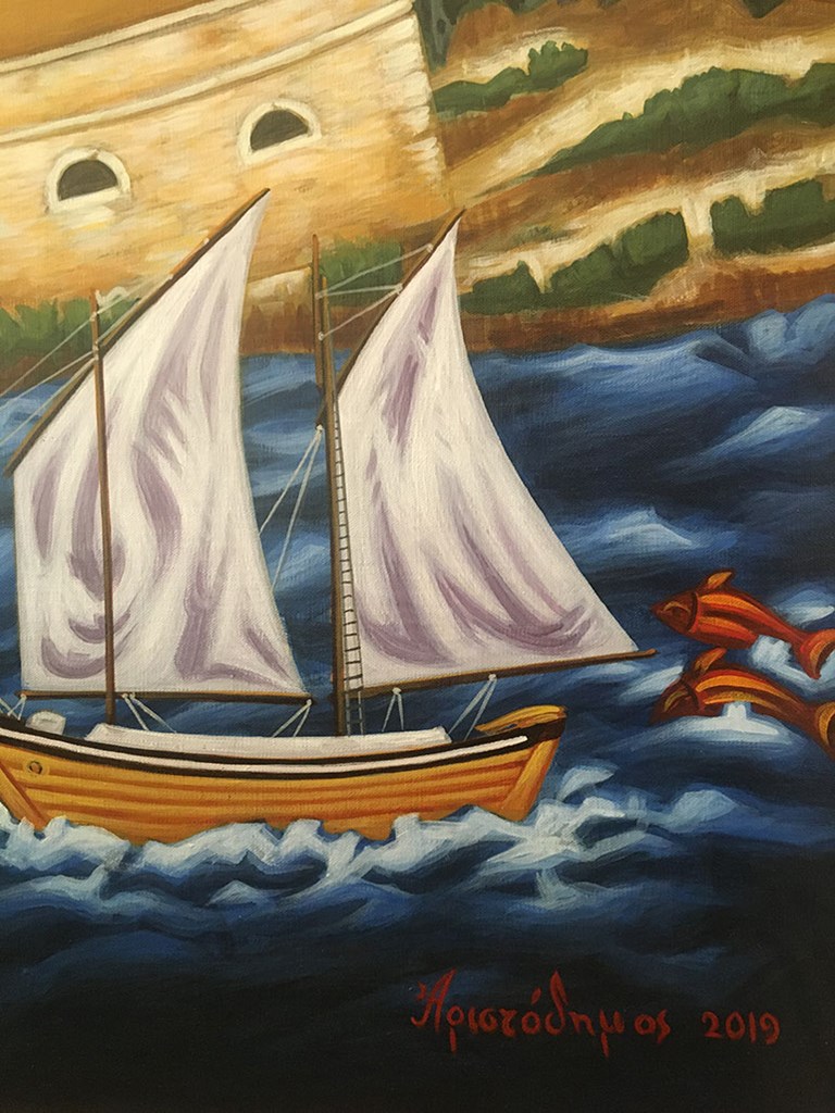 Είναι ένα έργο του ζωγράφου Αριστόδημου Παπαδάκη ο οποίος φιλοτέχνησε τον πίνακα «με τη μακρά θλιβερή ιστορία» όπως είπε στο ΑΠΕ-ΜΠΕ η αντιδήμαρχος Πολιτισμού του Δήμου Ηρακλείου, Αριστέα Πλεύρη.