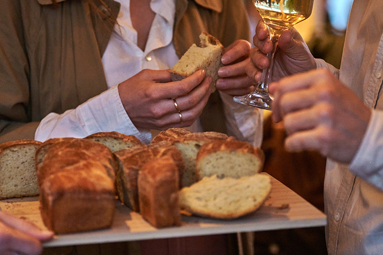 Παράλληλα, όλοι οι συμμετέχοντες κάθησαν σε ένα τραπέζι και μοιράστηκαν ψωμί από ντόπια άλευρα και λημνιό κρασί, ανταλλάσσοντας πληροφορίες για τις μεθόδους και τις παραδόσεις, που σχετίζονται με την παρασκευή του ψωμιού και την κατανάλωσή του στη Λήμνο.