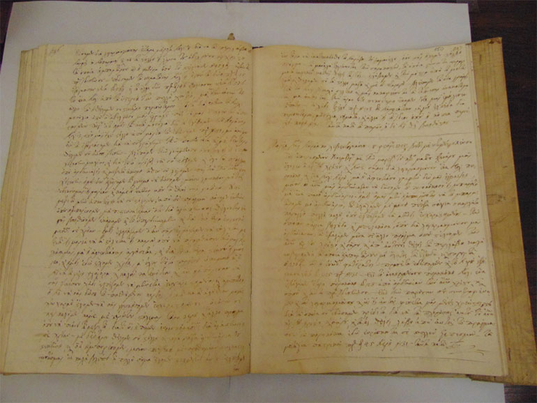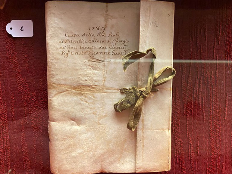 Το υλικό που συνδέει την άλλοτε «Συμβασιλεύουσα» με τη «Γαληνοτάτη», περιλαμβάνει ληξιαρχικές πράξεις (βαπτίσεων, γάμων και θανάτων), αλλά και έγγραφα συνδεδεμένα με ιστορικά γεγονότα και την ενεργό συμμετοχή στην ελληνική παροικία της πόλης, την ελληνορθόδοξη κοινότητα του Αγ. Γεωργίου. Παρουσιάζει το τοπίο όσων εγκαταστάθηκαν μόνιμα στην πόλη της Βενετίας, με έμφαση στην εμβληματική προσωπογραφία του αρχιεπισκόπου Δαλματίας, Ίστριας και Αλβανίας, Βενέδικτου Κραλίδη και τη δραστηριότητα επιχειρηματιών όπως οι Νιννή, Χρήστου, Πολυζώη, ενώ η έντονη εμπορική κίνηση μεταξύ Θεσσαλονίκης και Βενετίας και οι πνευματικές αναζητήσεις των νεαρών Θεσσαλονικέων που τους έφεραν ως σπουδαστές στο Κολλέγιο Φλαγγίνη αποτυπώνονται σε μεγάλο αριθμό εγγράφων. Ανάμεσα στα κιτρινισμένα έγγραφα και η εμπορική αλληλογραφία με παραλήπτη εμπορικό εταίρο την Κουλακιά (Χαλάστρα) για νήματα, υφάσματα κι ενδύματα από τη Βενετία.