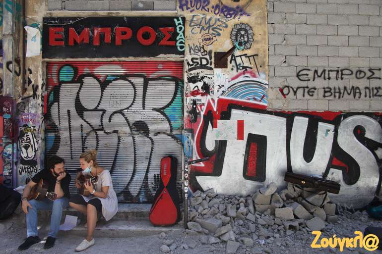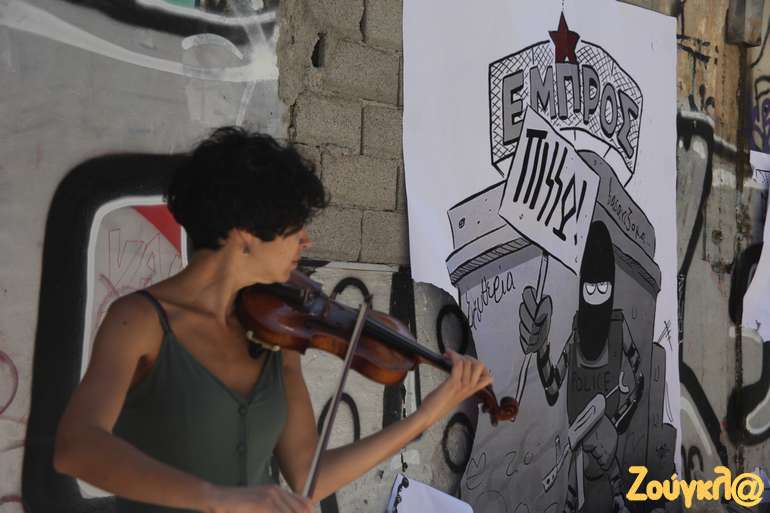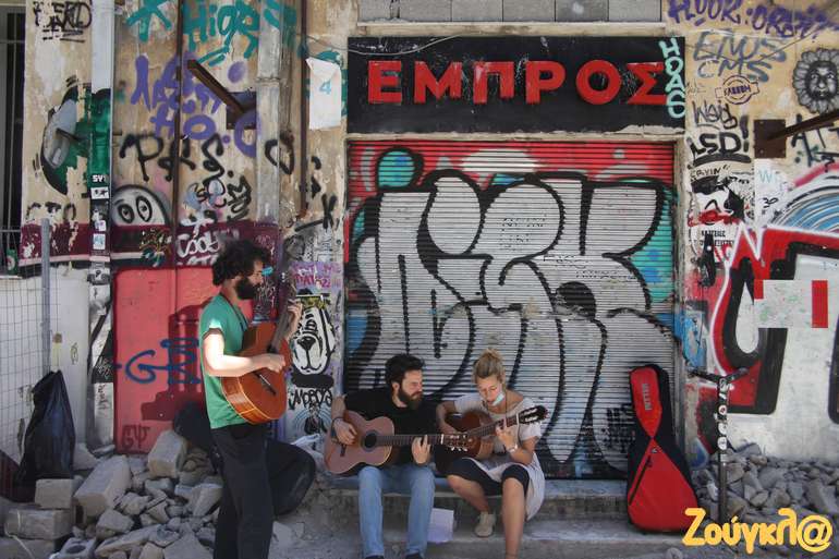 Πλήθος καλλιτεχνών βρέθηκε το πρωί της Κυριακής έξω από το θέατρο «Εμπρός» στην περιοχή του Ψυρρή για να παίξουν μουσική. Υπενθυμίζεται ότι μόλις λίγα 24ωρα πριν η αστυνομία προχώρησε σε εκκένωση του κτηρίου το οποίο βρισκόταν υπό κατάληψη.