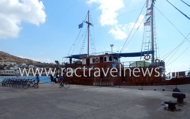 Το καράβι αποβίβασε ποδηλάτες, οι οποίοι θα περιηγήθηκαν στις ομορφιές του νησιού κάνοντας… ορθοπεταλιές.