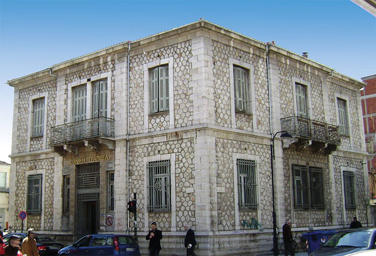 Το υποκατάστημα της ΕΤΕ στην Καρδίτσα ιδρύθηκε λίγους μήνες πριν την αποχώρηση των τουρκικών στρατευμάτων, το 1898. Το διώροφο πετρόκτιστο κτήριο έχει νεοκλασικές επιρροές και ιδιαίτερα επιμελημένη κατασκευή. Η βάση του από σειρές καμπύλα επεξεργασμένων λίθων, φέρει παραστάδες και γωνίες από λαξευτούς ορθογώνιους λίθους και ενδιάμεσα τμήματα από εξαγωνικούς. Χαρακτηριστικά αρχιτεκτονικά στοιχεία του είναι τα μονολιθικά μαρμάρινα φουρούσια, τα σιδερένια κιγκλιδώματα και οι καπνοδόχοι της σκεπής.