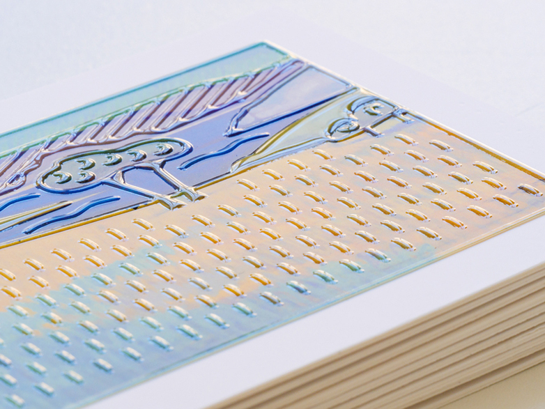 «Αποτελείται από δέκα καρτ ποστάλ, μια για κάθε έργο τέχνης από το κάθε μουσείο. Στη μία πλευρά, είναι το έργο τέχνης, το οποίο είναι ανάγλυφο για να είναι προσβάσιμο και από άτομα με βλάβη στην όραση και στην πίσω πλευρά υπάρχουν οι πληροφορίες του έργου τέχνης, θέση για γραμματόσημο και QR κωδικός που δίνει πρόσβαση στην περιγραφή του έργου» λέει η κ.Βλάχου διευκρινίζοντας ότι η περιγραφή του κάθε έργου τέχνης δημιουργήθηκε ομαδικά από άτομα με και χωρίς αναπηρία κατά την διάρκεια των δράσεων που υλοποίησε η OffStream στα δέκα συνεργαζόμενα μουσεία το φθινόπωρο του 2023. Σύμφωνα μάλιστα με την ίδια, είναι η πρώτη φορά που δημιουργούνται συμπεριληπτικές καρτ ποστάλ με την συγκεκριμένη τεχνική και με συμμετοχικό τρόπο. Ο προσανατολισμός των καρτ ποστάλ ορίζεται από το εξάστιγμο της braille που βρίσκεται πάντα στην πάνω αριστερή γωνία κάθε πλευράς τους. Σε κάθε κάρτα, στη μία πλευρά, υπάρχει φωτογραφική και ανάγλυφη αποτύπωση του έργου τέχνης και στην άλλη, βρίσκονται οι πληροφορίες του έργου τέχνης και πάνω δεξιά, θέση για γραμματόσημο. Κάτω δεξιά, QR κωδικός παρέχει πρόσβαση στην δημιουργική περιγραφή και στις πληροφορίες του έργου τέχνης.