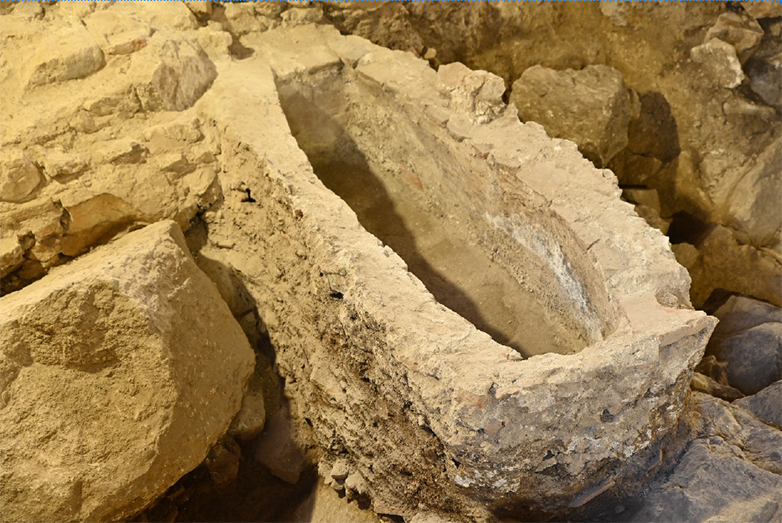 Ταφή που αποκαλύφθηκε μετά την απομάκρυνση τμήματος παλαιότερου δαπέδου στο εσωτερικό
