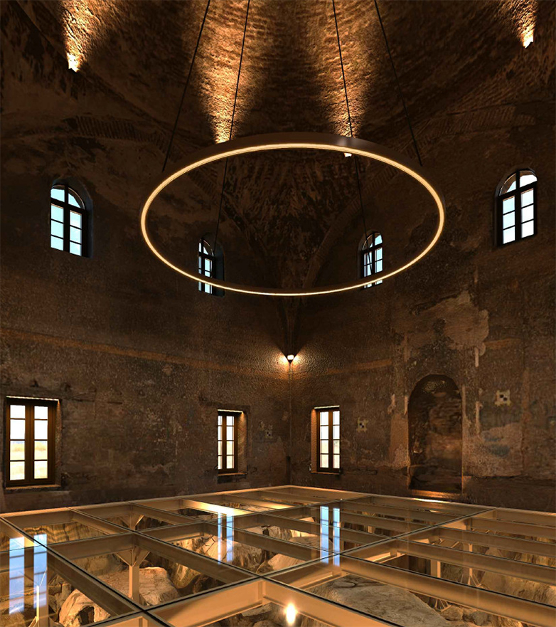 Τα ευρήματα παραμένουν ορατά εντός του τεμένους και αναδεικνύονται αισθητικά με τον κατάλληλο φωτισμό. Σύμφωνα με τη μελέτη φωτισμού του μνημείου, οι ανάγκες διακρίνονται σε εσωτερικό και εξωτερικό φωτισμό ανάδειξης, και σε λειτουργικό φωτισμό για την πραγματοποίηση πολιτιστικών εκδηλώσεων.