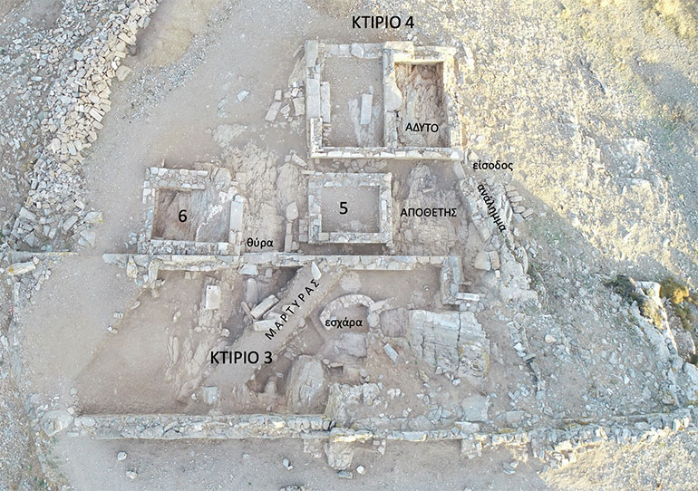 Αρχικά ολοκληρώθηκε η έρευνα του διμερούς Κτηρίου 4, διαστάσεων 7,50 Χ 5,70 μ., που αναμφίβολα ταυτίζεται με ναό, των κλασικών χρόνων. Στο Δυτικό χώρο, το 2021 είχαν βρεθεί τρεις θήκες από όρθια τοποθετημένες λίθινες πλάκες, τοποθετημένες εν μέρει μέσα σε στρώμα στάχτης που περιείχε πολλά καμένα οστά ζώων. Από το πίσω (Ανατολικό) δωμάτιο («άδυτο»), προέρχονται επίσης πολλά οστά μικρών ζώων, κυρίως όμως γνάθοι από χοιρίδια, θυμιατήρια πολύμυξα φωτιστικά σκεύη, καθώς και πήλινα γυναικεία ειδώλια.