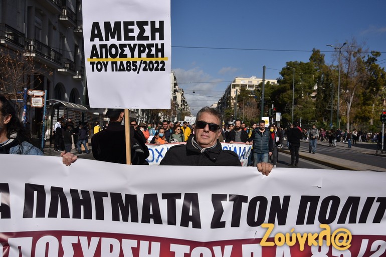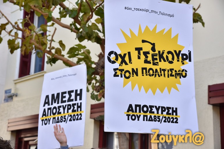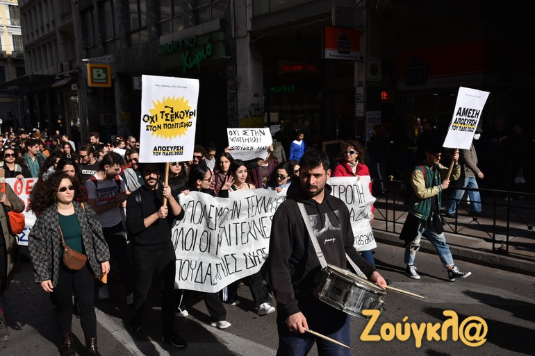 Η πορεία ξεκίνησε από το υπουργείο Πολιτισμού όπου νωρίτερα έγινε συγκέντρωση, απαιτώντας την άμεση απόσυρση του ΠΔ 85/22 και την αναβάθμιση των σπουδών.