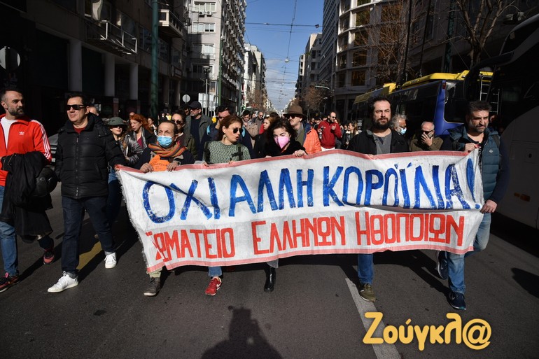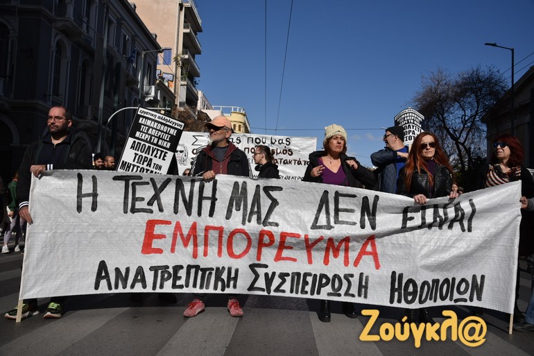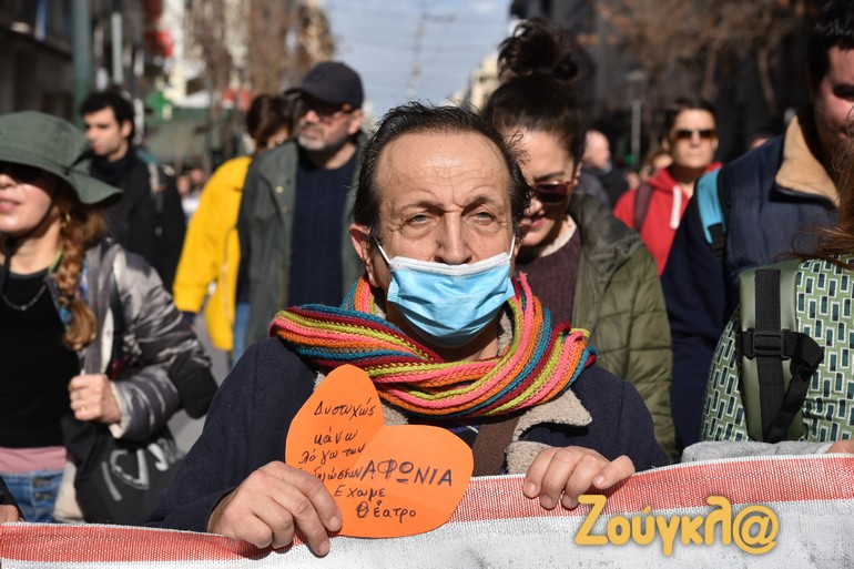 Μαζική πορεία από το υπουργείο Πολιτισμού προς το Μέγαρο Μαξίμου πραγματοποιήθηκε νωρίτερα στο πλαίσιο της σημερινής νέας παν-καλλιτεχνικής κινητοποίησης, έπειτα από κάλεσμα των καλλιτεχνικών σωματείων, των Συλλόγων Σπουδαστών Καλλιτεχνικών Σχολών, καθώς της Πανελλήνιας Ένωσης Γονέων Μουσικών και Καλλιτεχνικών Σχολείων.