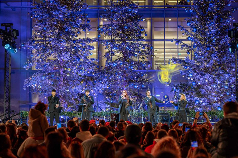 Όλα αυτά μαζί συνέθεσαν ένα μαγευτικό χριστουγεννιάτικο σκηνικό πάνω στο οποίο στήθηκε μια μεγάλη γιορτή στην Αγορά του ΚΠΙΣΝ με οικοδέσποινα την ηθοποιό Σμαράγδα Καρύδη. Η βραδιά ξεκίνησε με τους Vox The Acapella Group, το πρώτο pop πολυφωνικό συγκρότημα στην Ελλάδα που χρησιμοποιεί την ανθρώπινη φωνή ως μουσικό όργανο. Στη συνέχεια, η Σοφία Στρατή παρουσίασε στο κοινό ένα πρόγραμμα που συνδύασε soul-funk μελωδίες και διασκευές χριστουγεννιάτικων τραγουδιών.