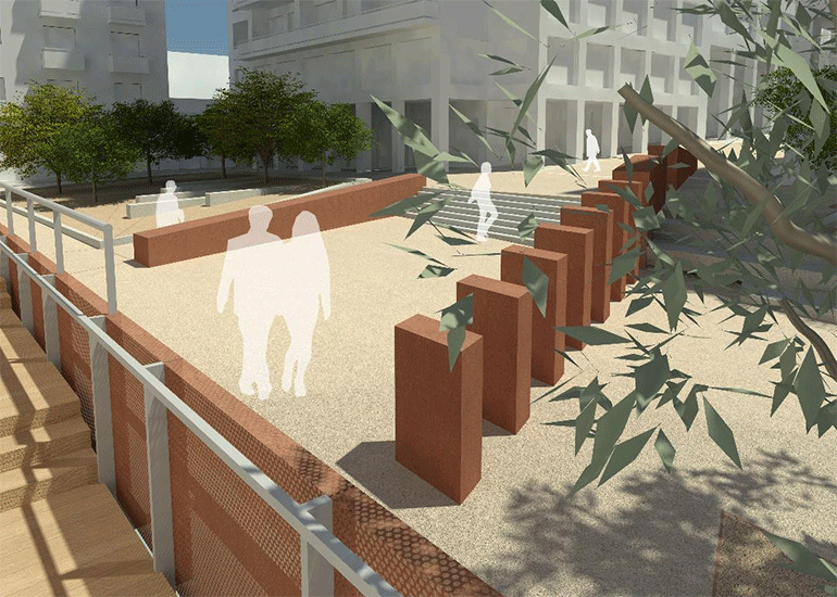 »Η λύση που είχε αποσπάσει το 2010 το πρώτο βραβείο στον αρχιτεκτονικό διαγωνισμό ιδεών με αγωνοθέτη την «Ενοποίηση Αρχαιολογικών Χώρων της Αθήνας», επιχειρεί με λιτούς σχεδιαστικούς χειρισμούς να συνδέσει νοηματικά τον τόπο του σήμερα με το ιστορικό υπόβαθρο της πόλης και να δημιουργήσει τις συνθήκες ενός ποιοτικού χώρου – υποδοχέα πολλαπλών και διαφορετικών ατομικών δράσεων και συλλογικών συνευρέσεων. Προτείνεται η δημιουργία ενός κεντρικού πλατώματος μπροστά από την Διπλάρειο Σχολή, σε χαμηλότερη στάθμη από το γύρω περιβάλλον, το οποίο θα λειτουργεί ως συλλογικό καθιστικό. Στο εσωτερικό του πλατώματος, η παρουσία μιας μεγάλης ελιάς στο κέντρο, σε συνδυασμό με ένα κανάλι ανακυκλούμενου νερού, θα λειτουργούν ως μια φυσική εγκατάσταση τέχνης, υπαινικτική της Αθηναϊκής μυθολογίας που εδραιώνει την σχέση της πόλης και της “εξοχής”. Μέσα στο κεντρικό πλάτωμα θα κατασκευαστεί ένα μεταλλικό γλυπτό, στην θέση όπου πιστεύεται ότι υπάρχουν τα υπόγεια ίχνη του μεσαιωνικού τείχους Χασεκή. Το γλυπτό αυτό θα φωτίζεται στην νύχτα και θα λειτουργεί ως χρονογράφος, με την υποστήριξη ηλεκτρονικής διάταξης.