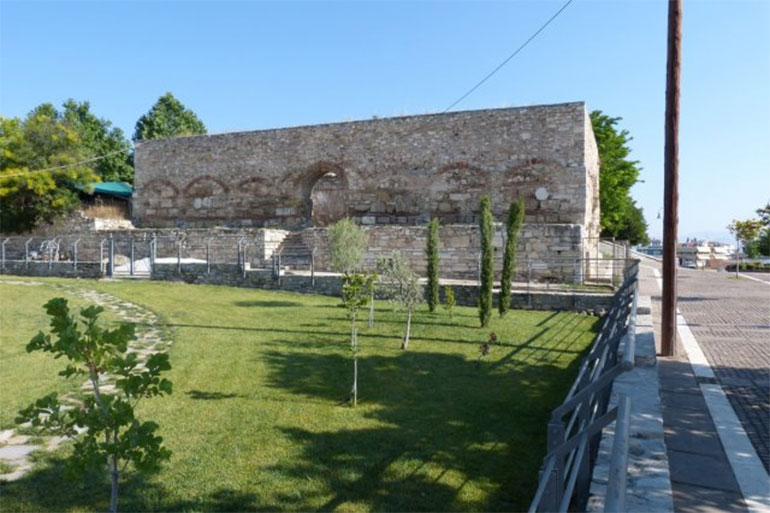 Σύμφωνα με την Εφορεία Αρχαιοτήτων της Λάρισας, πρόκειται για ορθογώνιο κτήριο με τρία τοξωτά μνημειακά πρόπυλα στη νότια, ανατολική και δυτική πλευρά. Η χαμηλή θύρα της βόρειας πλευράς οδηγούσε σε μικρό καμαροσκεπή χώρο, πιθανότατα θησαυροφυλάκιο. Στεγαζόταν από έξι μολυβδοσκέπαστους θόλους που στηρίζονταν σε δύο ογκώδεις πεσσούς.