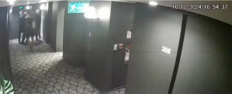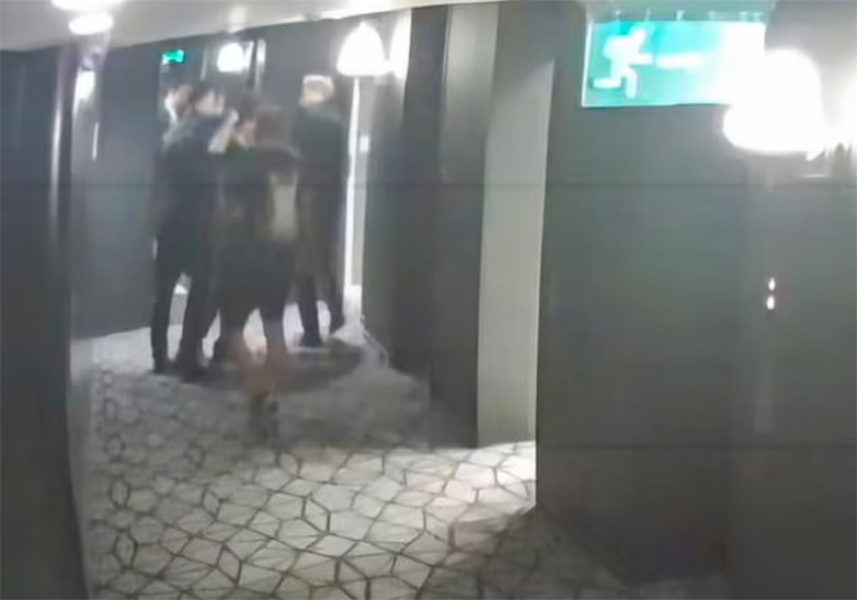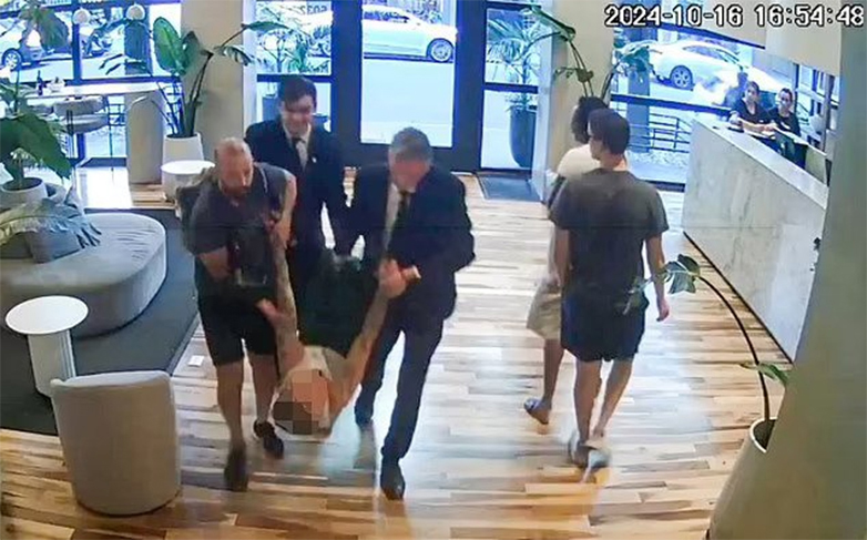 Τα πλάνα δείχνουν τρεις άνδρες, πιθανότατα υπαλλήλους του ξενοδοχείου, να μεταφέρουν τον Λίαμ Πέιν στο δωμάτιό του λίγο πριν την πτώση.