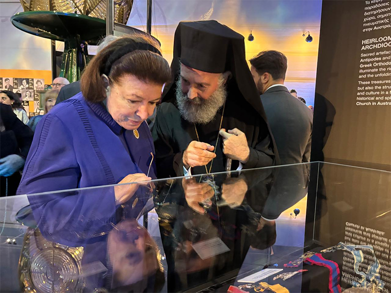 Ο Αρχιεπίσκοπος Αυστραλίας κ.κ. Μακάριος ξεναγεί την Υπουργό Πολιτισμού στην έκθεση των κειμηλίων