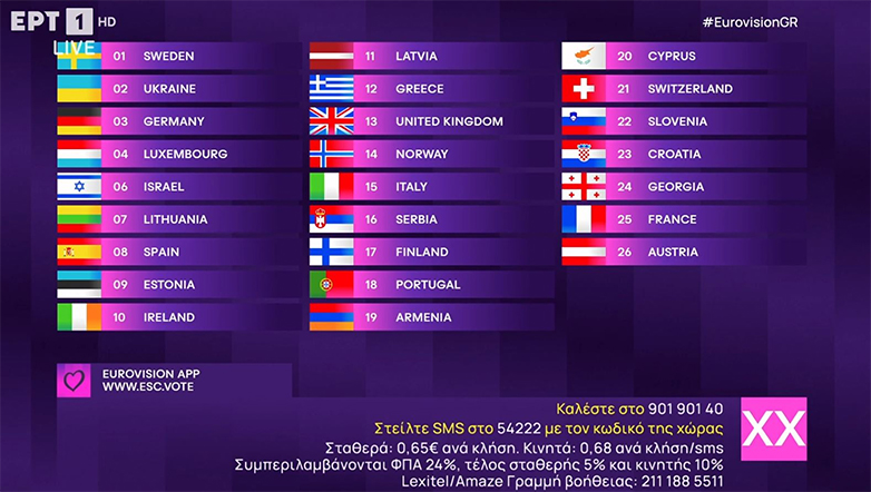 Αναλυτικά η σειρά εμφάνισης των χωρών: