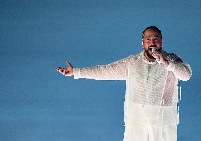 Ο Simane ντυμένος στα ολόλευκα εκπροσωπεί τη Γαλλία με το τραγούδι «Mon Amour».
