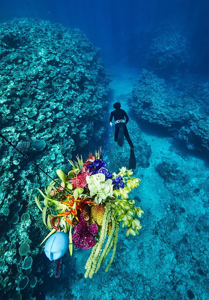 Δύτες βουτούν στα βάθη της θάλασσας μεταφέροντας «γλυπτά» από άνθη ανάμεσα από κοραλλιογενείς υφάλους. Μέσα στο ρινγκ, παλαιστές αναμετρώνται με στελέχη λουλουδιών και φύλλα. Τολμηροί που επιδίδονται σε ελεύθερη πτώση με αλεξίπτωτο αφήνονται στο κενό από αεροσκάφος, κρατώντας σφιχτά μια ανθοσύνθεση.