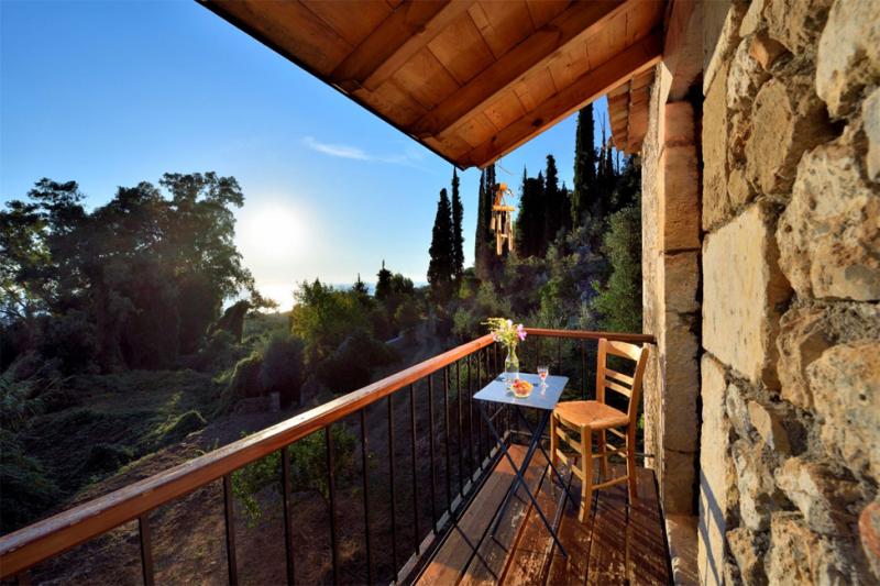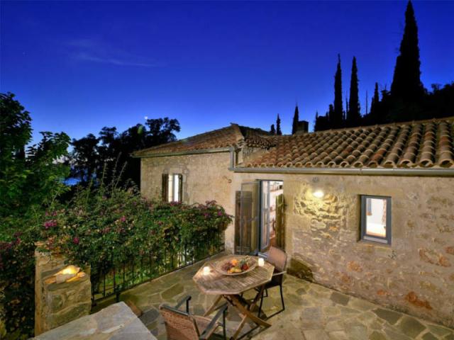 Πρόκειται για ένα πανέμορφο παραδοσιακό οίκημα δύο επιπέδων, συνολικής επιφανείας 250 τετραγωνικών μέτρων, σε οικόπεδο 2 στρεμμάτων, στην κυριολεξία μέσα στην οργιώδη βλάστηση της περιοχής, με εντυπωσιακά κυπαρίσσια να το ζώνουν από παντού και με απερίσπαστη θέα προς τη θάλασσα, η οποία απέχει ελάχιστα λεπτά με το αυτοκίνητο ενώ είναι εύκολα προσβάσιμη και με τα πόδια. Οι αρχιτέκτονες και οι διακοσμητές, για τους οποίους δυστυχώς δεν βρήκαμε καμία πληροφορία, έχουν κάνει εκπληκτική δουλειά, κυρίως στο εσωτερικό της οικίας, η οποία περιλαμβάνει δύο κρεβατοκάμαρες, μία σε κάθε επίπεδο και σε αυστηρά παραδοσιακό -λιτό- στυλ που είναι αδύνατον να μη συνεπάρει και να μην ταξιδεύσει στο παρελθόν τους 5 φιλοξενούμενους τους.