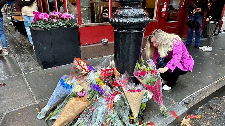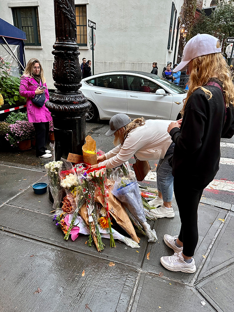 Άνθρωποι κάθε ηλικίας συγκεντρώθηκαν έξω από την εξαώροφη πολυκατοικία στο West Village στο κέντρο της Νέας Υόρκης κρατώντας σημειώματα που είχαν γράψει μεταξύ άλλων «εδώ που όλοι χάσαμε έναν φίλο» και τραβώντας φωτογραφίες από τη διάσημη τοποθεσία.