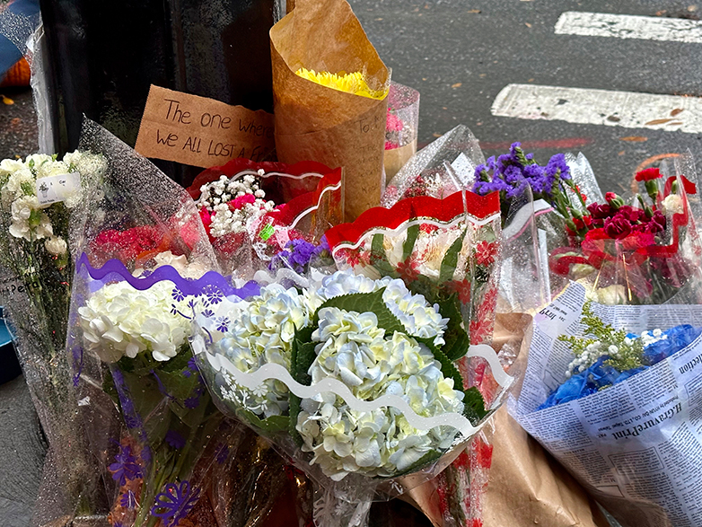 H βροχή δεν εμπόδισε τους εκατοντάδες θαυμαστές των «Friends» στο Μανχάταν να τιμήσουν τον Μάθιου Πέρι, ο οποίος άφησε την τελευταία του πνοή σε ηλικία 54 ετών, αφήνοντας λίγα λουλούδια και συγκινητικά σημειώματα εκεί όπου γυρίστηκε η σειρά.