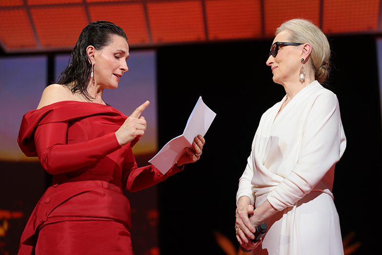 Απαριθμώντας τους ρόλους της, η Μπινός αποκάλεσε τη Μέριλ Στριπ «παγκόσμιο θησαυρό», προσθέτοντας: «Άλλαξες τον τρόπο που βλέπουμε σινεμά».