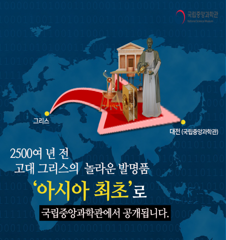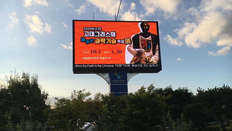 Στις 30-9-16 εγκαινιάστηκε η περιοδεύουσα έκθεση με τίτλο «Oι Hi-Tec εφευρέσεις των αρχαίων Ελλήνων: οι απαρχές της σύγχρονης τεχνολογίας μας» σε ένα από τα πιο σύγχρονα επιστημονικά και τεχνολογικά κέντρα στον κόσμο, το Εθνικό Μουσείο Επιστημών της Daejeon στη Νότια Κορέα.