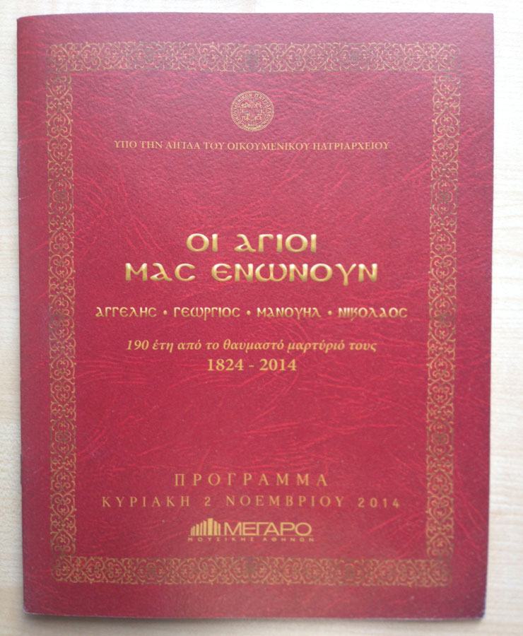 Το Πρόγραμμα ξεκίνησε με Πολυαρχιερατική θεία λειτουργία στον Ιερό Ναό Αγίου Νικολάου στην Ασκληπιού 38, και στη συνέχεια ακολούθησε μεγάλη κρητική καλλιτεχνική εκδήλωση στο Μέγαρο Μουσικής, με τη συμμετοχή αρκετών Κρητικών Καλλιτεχνών και χορό από τους «ΚΟΥΡΗΤΕΣ» του Μανώλη Παττακού.