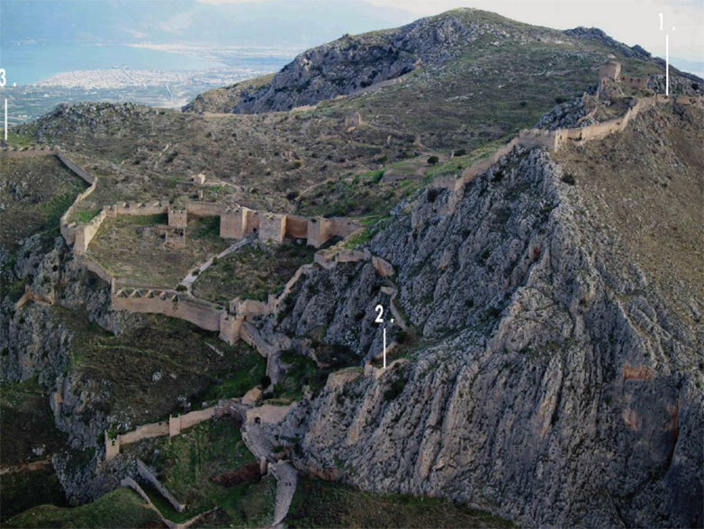Οι τρεις θέσεις του εξωτερικού τείχους που περιλαμβάνονται στις επεμβάσεις στερέωσης και αποκατάστασης