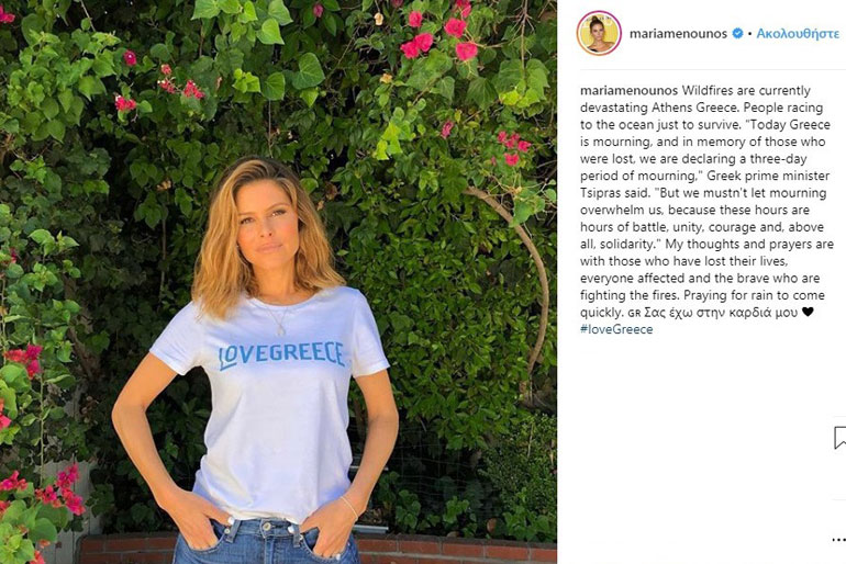 H ελληνικής καταγωγής παρουσιάστρια, Μαρία Μενούνος, μέσω Instagram, εξέφρασε τη λύπη της και τη συμπαράσταση μας στη χώρα μας, τονίζοντας «Σας έχω στην καρδιά».
