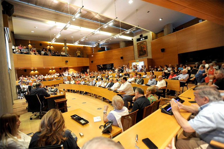 Ανάμεσα σε όσους κατέκλυσαν την αίθουσα του Δημοτικού Συμβουλίου ήταν ο Δήμαρχος Θεσσαλονίκης Κων. Ζέρβας, οι βουλευτές Σταύρος Καλαφάτης, Στράτος Σιμόπουλος, Δημήτρης Κούβελας, Θόδωρος Καράογλου, ο υποστράτηγος του Πυροσβεστικού Σώματος Κων. Δαδούδης, ο πρώην πρύτανης του ΑΠΘ Νίκος Παπαϊωάννου, ο Πρόεδρος του Περιφερειακού Συμβουλίου Θοδωρής Μητράκας, ο αντιπεριφερειάρχης Κώστας Γιουτίκας, ο δήμαρχος Βισαλτίας Αθ. Μασλαρινός, ο Πρόεδρος του ΟΑΣΘ Κώστας Ταγγίρης, οι δημοτικοί σύμβουλοι Βασίλης Γάκης και Σάκης Τζακόπουλος, ο πολιτευτής και δημοσιογράφος Δημήτρης Βενιέρης, ο πρώην πρόεδρος του Δημ. Συμβουλίου Θεσσαλονίκης Σωτ. Καπετανόπουλος, ο Πρόεδρος του Συνδέσμου Εξαγωγέων Σίμος Διαμαντίδης, το μέλος του ΔΣ του ΕΕΘ Λευτέρης Γεωργιάδης και πολλοί δημοσιογράφοι και επαγγελματίες των ΜΜΕ.