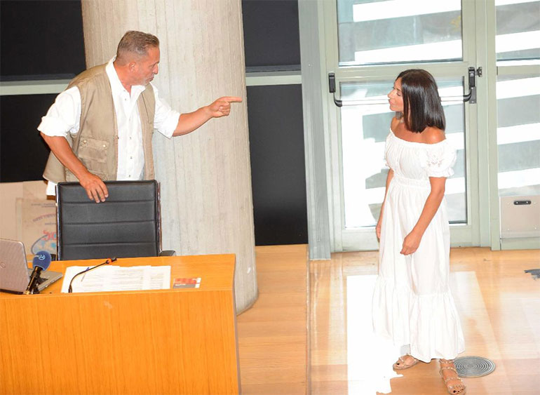 Η εκδήλωση άρχισε με την δραματοποίηση μικρού μέρους του κειμένου από τους ηθοποιούς Ολυμπία Δασκαλοπούλου και Παναγιώτη Καβαλιεράκη.