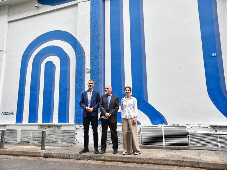 Στο ιστορικό κέντρο της Αθήνας, η πρόσοψη ενός παλιού κτηρίου στην οδό Λέκκα 24, απέκτησε πνοή και χρώμα, χάρη στη συνεργασία της Πρεσβείας του Ισραήλ, στην Αθήνα, με τον Δήμο Αθηναίων.