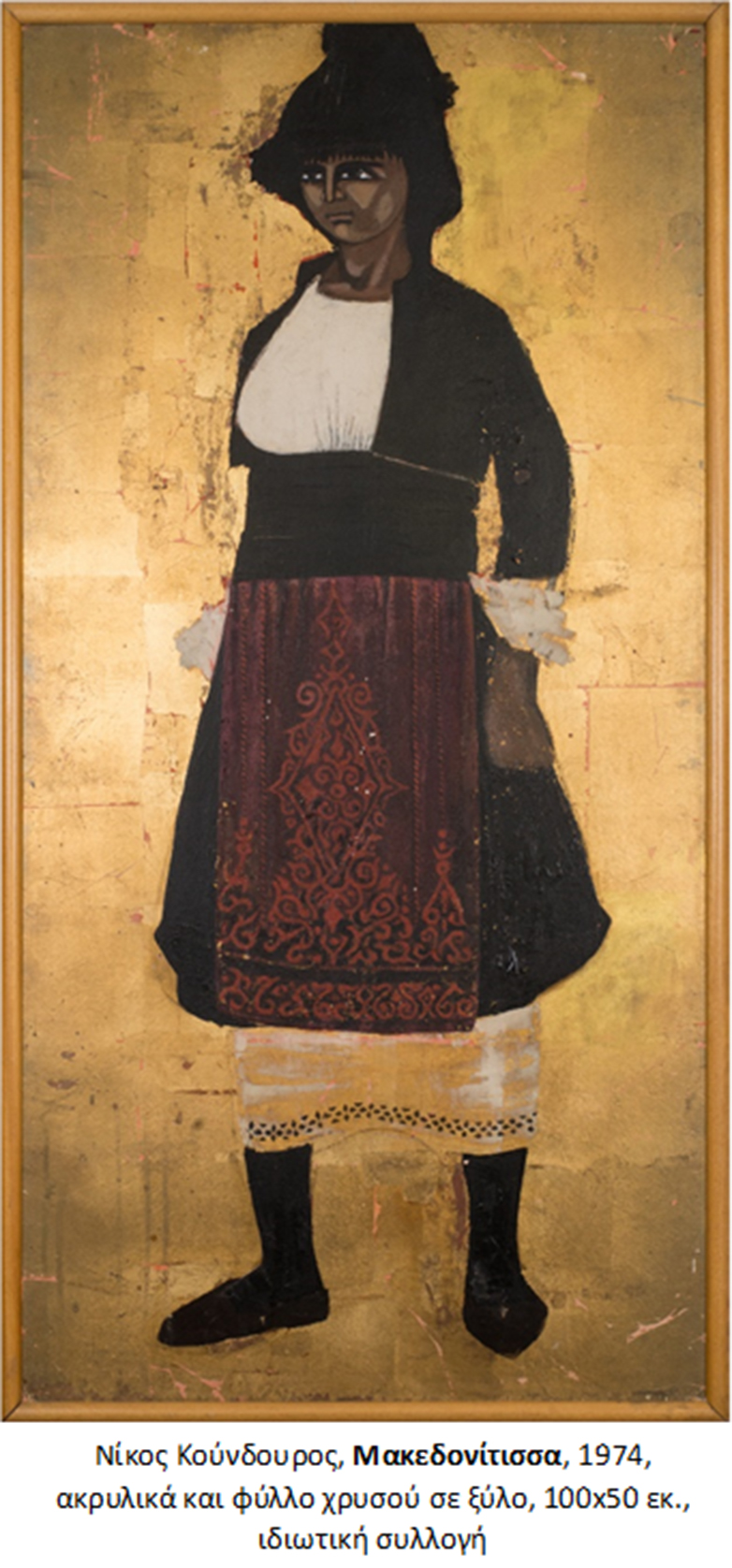 Στα ζωγραφικά έργα του συναντά κανείς το αχόρταγο, σαρωτικό βλέμμα του Νίκου Κούνδουρου και την ανάγκη του να αποτυπώσει τον κόσμο με τα δικά του χρώματα, τα βυζαντινά, τις αποχρώσεις της λαϊκής παράδοσης της Ελλάδας, των σωμάτων και των αγίων της.