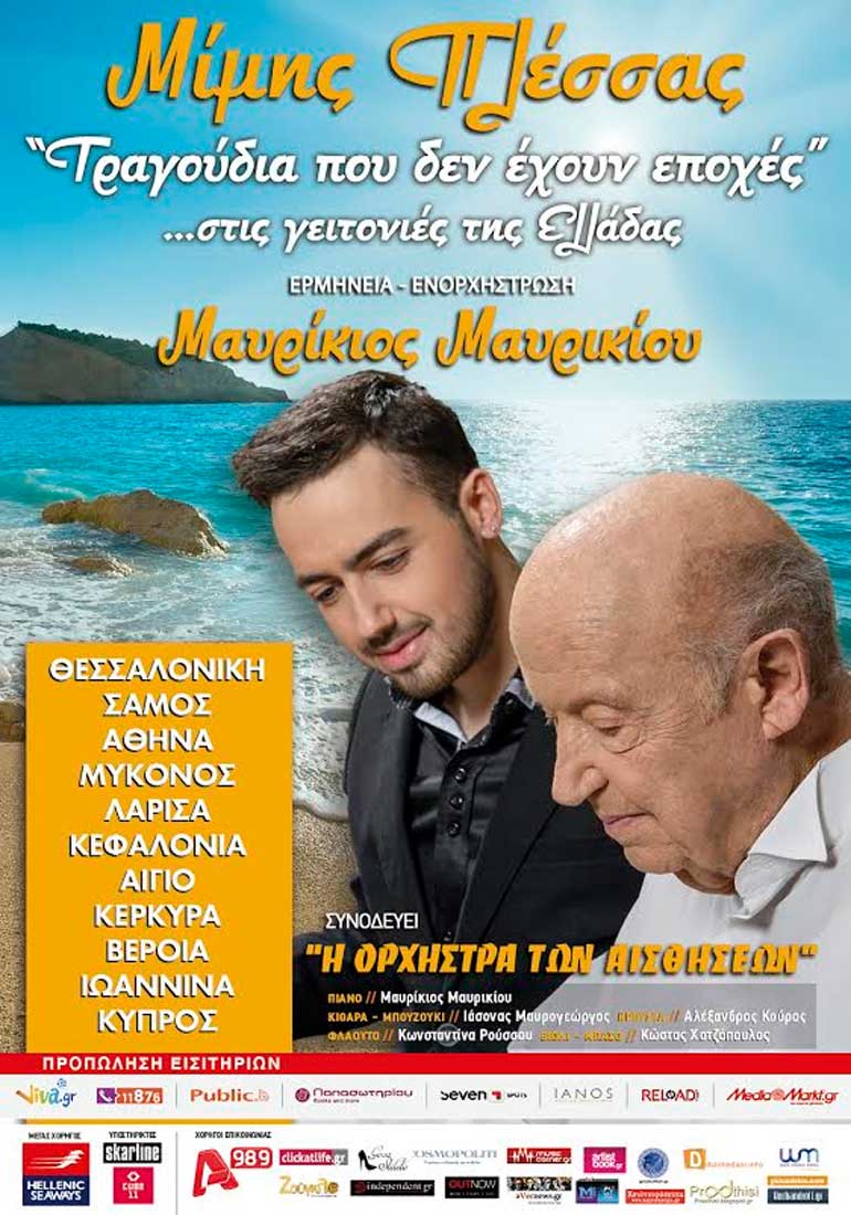 Τον σπουδαίο συνθέτη Μίμη Πλέσσα και τον Μαυρίκιο συνοδεύει η πενταμελής “Ορχήστρα των Αισθήσεων”. Όλοι μαζί ταξιδεύουν στις γειτονιές της Ελλάδας, σε βράδια καλοκαιρινά με φεγγάρια και αρώματα γιασεμιών, με συναισθήματα και ηχοχρώματα από πιάνο, κιθάρα, μπουζούκι, φλάουτο, βιολί, μπάσο και κρουστά και παρουσιάζουν μεταξύ άλλων, για πρώτη φορά εκτός Αθηνών, την πρώτη κοινή τους δισκογραφική συνεργασία, με τον ομώνυμο τίτλο της περιοδείας «Τραγούδια που δεν έχουν εποχές».