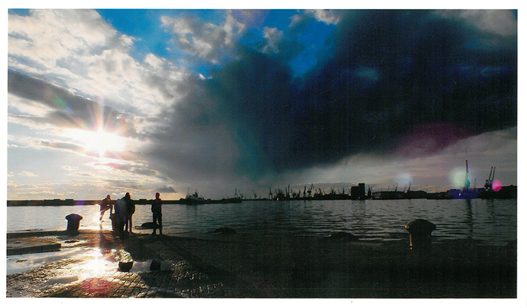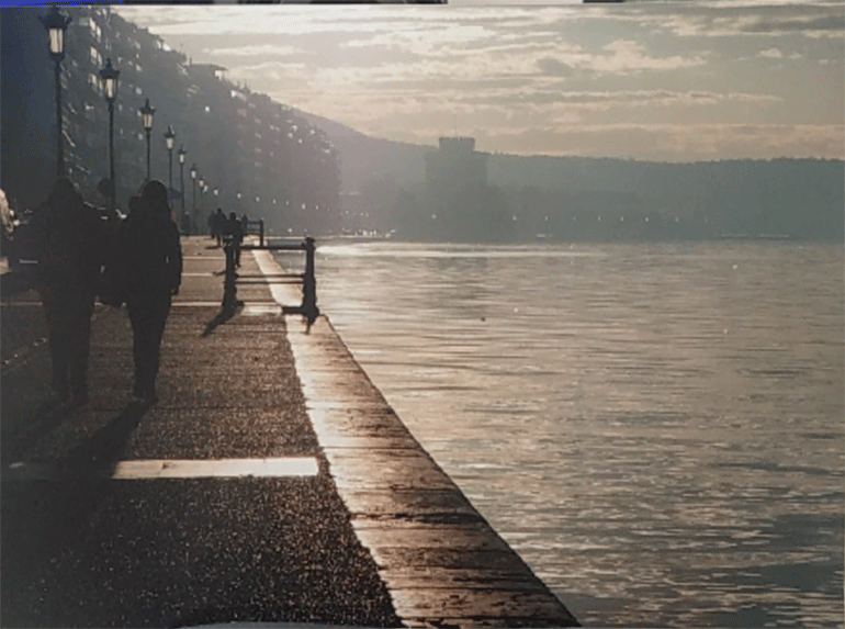 Με τους συμμαθητές του, τη δεκαετία του ’60, η τρέλα τους ήταν να ανεβαίνουν σε ένα καραβάκι, την «Ευδοκία», τον «Ναυτίλο», τη «Θεσσαλονίκη» ή τη «Λευκή» και να πηγαίνουν για βουτιές στην Περαία και στη Σκάλα της Αγίας Τριάδας. Σαν χθες τα θυμάται… Μια ζωή «δεμένος» με τον Θερμαϊκό, που με τα εκατοντάδες -ανάλογα με την ώρα και την εποχή- χρώματά του, τον βοήθησε σε δύσκολες στιγμές. Και τον βοηθάει ακόμη. Κάθε μέρα. Τα τελευταία δέκα χρόνια, από τότε που βγήκε στη σύνταξη, ο Μηνάς Ευγενίδης στην καθημερινή του βόλτα από τον Λευκό Πύργο προς το Λιμάνι έχει «φυλακίσει» κάθε απόχρωση ανατολής και δύσης. Με μια φωτογραφική μηχανής τσέπης, διώχνει μακριά αγωνίες και άγχη.