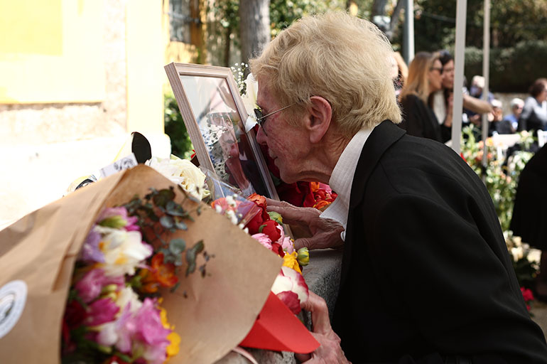 Την εκφώνηση των επικηδείων και το τελευταίο αντίο του κόσμου συνόδευαν ενδιάμεσα μελωδίες και τραγούδια που η ίδια είχε επιλέξει και τα οποία ερμήνευαν ζωντανά φίλοι της μουσικοί. Μετά το «βαλς των χαμένων ονείρων» του Μάνου Χατζιδάκι, ο σύντροφος της Αντώνης Λιάκος εκφώνησε, όπως η ίδια του είχε ζητήσει, επικήδειο στον δημόσιο αποχαιρετισμό τους.