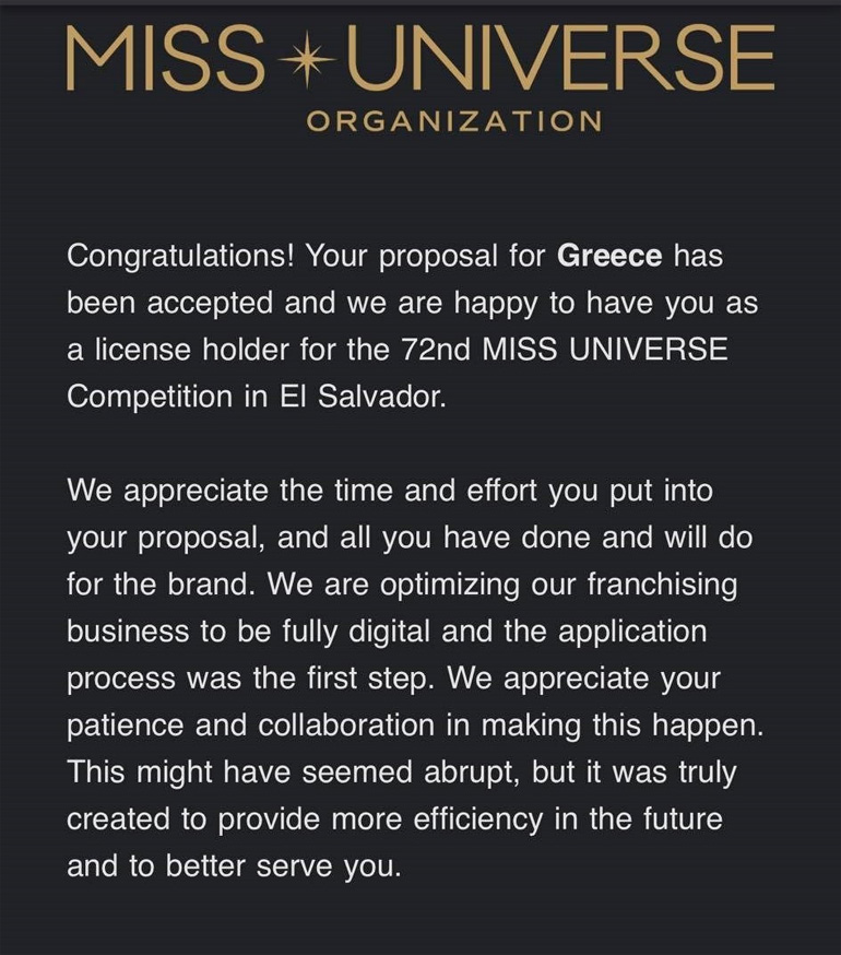 Να σημειωθεί, πως φέτος τα MISS UNIVERSE, λόγω αλλαγής ιδιοκτησίας του, από την κυρία Anne Jakrajutatip, έπραξαν τα εξής: Άνοιξε την πλατφόρμα διεκδίκησης δικαιωμάτων εκπροσώπησης για όλες τις χώρες παγκοσμίως.