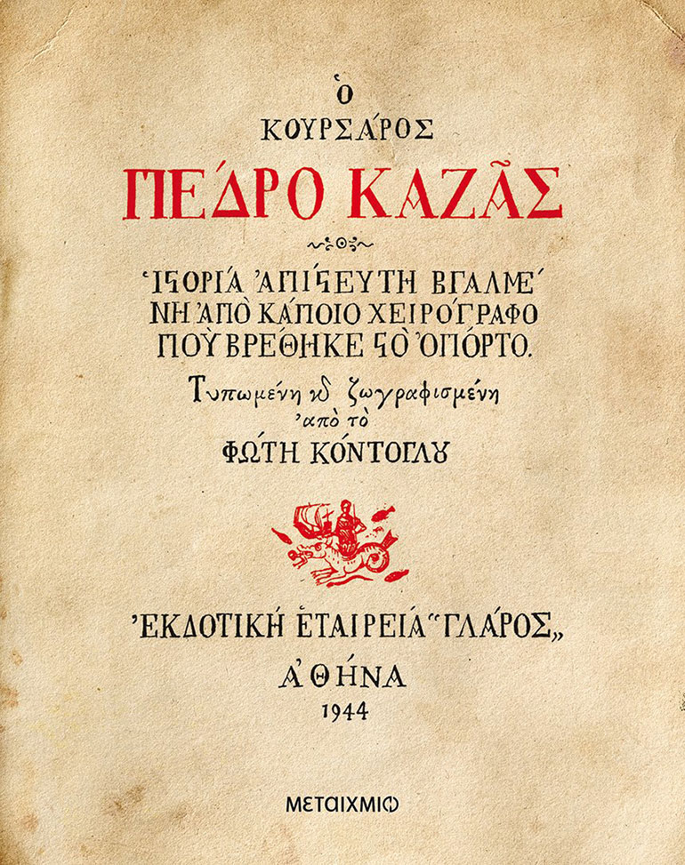 Όσο κι αν αργότερα ο Κόντογλου έβαλε στο στόχαστρό του τη Δύση, αναλαμβάνοντας την υπεράσπιση του ελληνοκεντρισμού και της ορθοδοξίας, η αγωγή και η καλλιτεχνική του συνείδηση δεν απέβαλαν ποτέ τις δυτικές τους ρίζες. Αυτό θα το εννοήσουμε καλύτερα, διαβάζοντας τον «Πέδρο Καζάς» (1920), όπου ο συγγραφέας αναβιώνει την ιστορία του Ροβινσώνα με ένα ταξίδι στον Ινδικό Ωκεανό. Εκεί ο πρωταγωνιστής του Κόντογλου, ο Πορτογάλος Βάκα Γκάβρο (υποτίθεται πως ο Κόντογλου ανακαλύπτει ένα ξεχασμένο χειρόγραφό του), συναντά κατά τον 19ο αιώνα, σαν μέσα σε όνειρο ή σαν μέσα σε παραίσθηση τον Ισπανό κουρσάρο του 15ου και του 16ου αιώνα Πέδρο Καζάς.