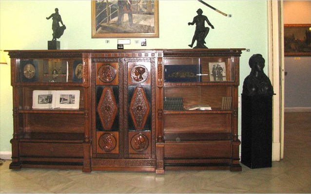 Στην ενότητα αυτή συγκαταλέγονται βιβλιοθήκη με ανάγλυφη διακόσμηση και μαρκετερί, γραφείο και πολυθρόνα με ανάγλυφους γρύπες, ξυλόγλυπτη δίφυλλη ντουλάπα, καθρέφτης με ολόγλυφα δελφίνια και ανάκλιντρο με διακοσμητικά δελφίνια – το αγαπημένο μοτίβο της Ελισάβετ. Επίσης, έπιπλα μέσα στο παρεκκλήσιο, όπως η Αγία Τράπεζα σε ξύλο καρυδιάς με μαύρη λάκα και δύο πάγκοι προσευχής σε ξύλο καρυδιάς και ύφασμα.