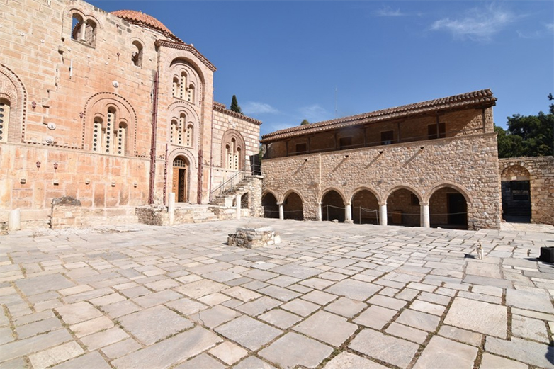 Ένα ακόμη σημαντικό μνημείο, η Μονή Δαφνίου θωρακίζεται έναντι των πυρκαγιών από το Υπουργείο Πολιτισμού.