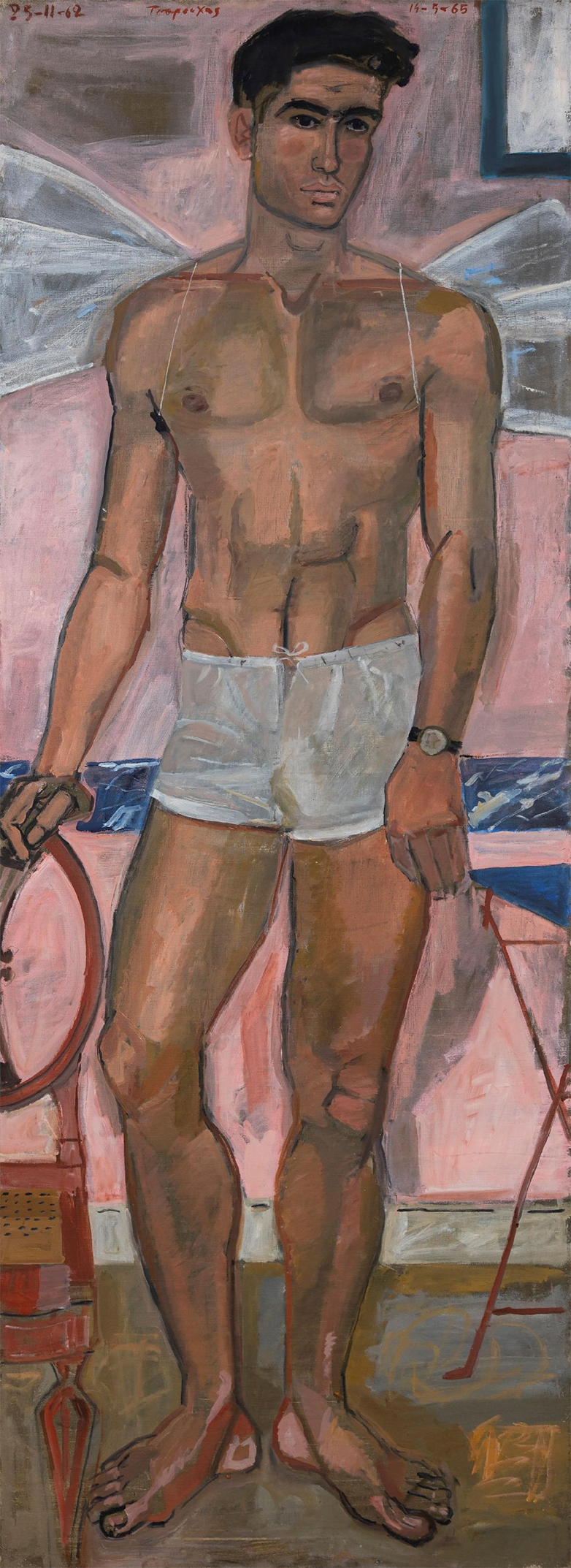 Σε πρωταγωνιστή της δημοπρασίας αναμένεται να αναδειχθεί ένα από τα σημαντικότερα έργα του Γιάννη Τσαρούχη (1910-1989), ο Νέος μεταμφιεσμένος σε Έρωτα (€400.000-600.000) που ζωγραφίστηκε στα μέσα της δεκαετίας του 1960, στην πιο δημιουργική περίοδο του καλλιτέχνη, και συγκεντρώνει τα βασικά στοιχεία του περίφημου «τσαρουχικού σύμπαντος». Με την καλλιτεχνική του σοφία, ο Τσαρούχης κατορθώνει να δώσει συμβολική αξία στο σώμα και να μεταμορφώσει ένα ημίγυμνο μοντέλο του εργαστηρίου του σε θεότητα ενός σύγχρονου πανθέου. Έχοντας αντιμετωπίσει με γενναιότητα τις ιδεολογικές προκλήσεις και τις μεροληπτικές ηθικές πρακτικές της εποχής του, ο Τσαρούχης είναι σήμερα ένας διάσημος και εξαιρετικά συλλεκτικός καλλιτέχνης με διαρκώς αυξανόμενο διεθνές κοινό.