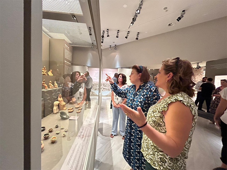 Η Υπουργός Πολιτισμού Λίνα Μενδώνη με τη Γενική Διευθύντρια Αρχαιοτήτων και Πολιτιστικής Κληρονομιάς Ολυμπία Βικάτου στο Αρχαιολογικό Μουσείου Θέρμου