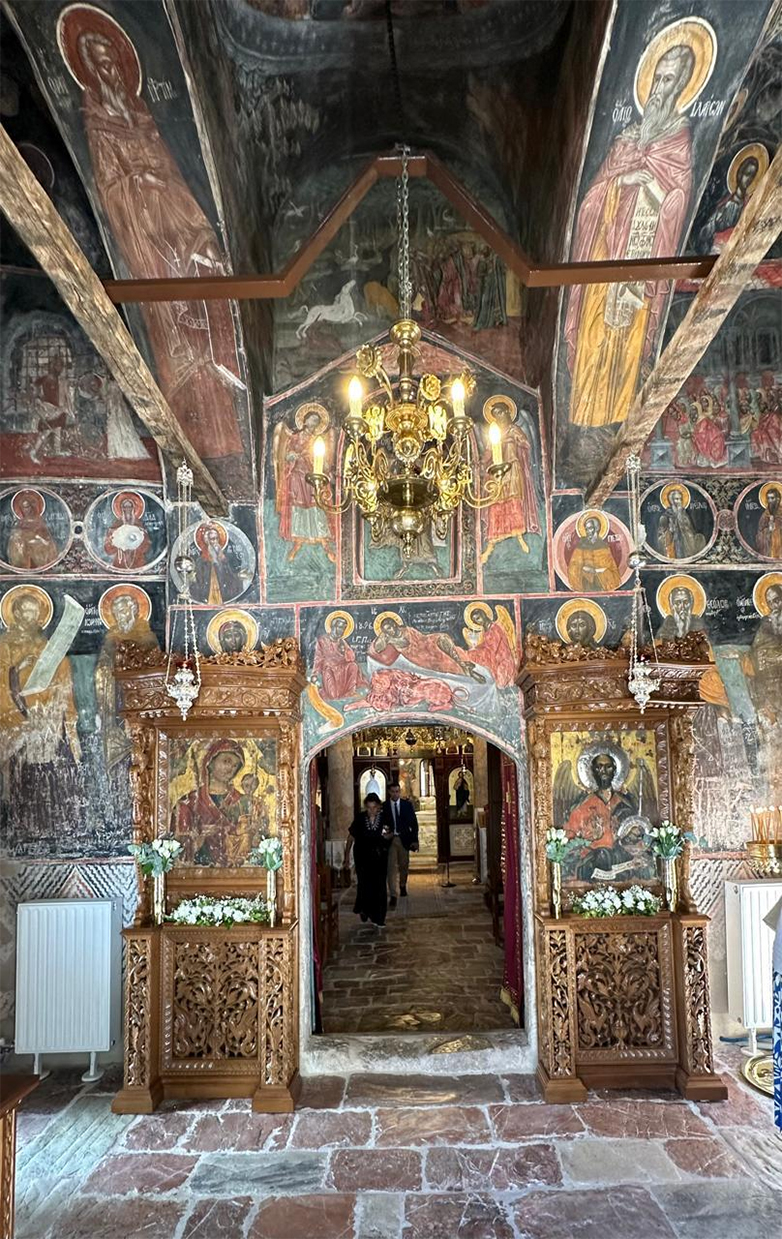 Η απόδοση του Καθολικού της Ιεράς Μονής έγινε παρουσία του Μητροπολίτη Ναυπάκτου και Αγίου Βλασίου, κ.κ. Ιεροθέου, του Περιφερειάρχη Δυτικής Ελλάδας, Νεκτάριου Φαρμάκη και του βουλευτή Θ. Παπαθανάση. Τη Λίνα Μενδώνη συνόδευαν η Γενική Διευθύντρια Αρχαιοτήτων και Πολιτιστικής Κληρονομιάς Ολυμπία Βικάτου, η Τμηματάρχης Έργων της Διεύθυνσης Αναστήλωσης Βυζαντινών και Μεταβυζαντινών Μνημείων και υπηρεσιακά στελέχη του ΥΠΠΟ.