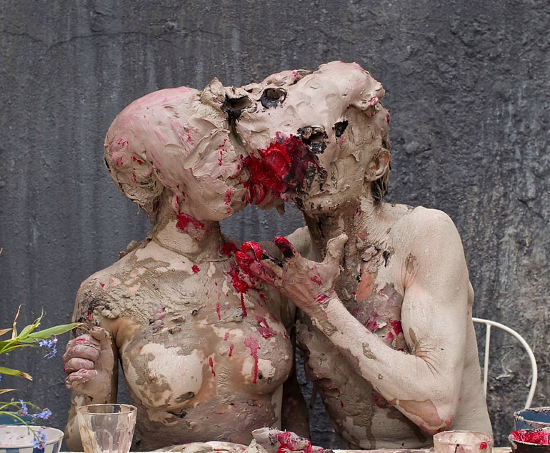 Η παραγωγή «Transfiguration» (Μεταμόρφωση) είναι η ιστορία της ανεκπλήρωτης επιθυμίας ενός γλύπτη που θέλει να δώσει πνοή στο δημιούργημά του. Σε μια κίνηση απελπισίας, ο Olivier de Sagazan σμιλεύει με πηλό το κεφάλι του, θάβει τον εαυτό του στο υλικό, καταστρέφει την ταυτότητά του και γίνεται ένα ζωντανό έργο τέχνης.