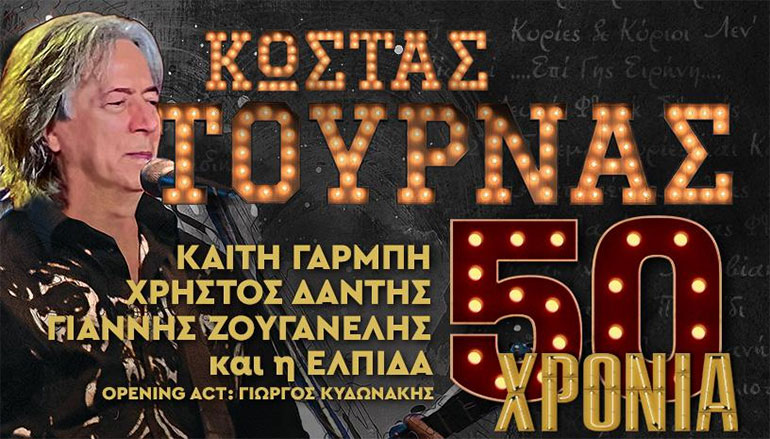 Μια μεγάλη συναυλία-αφιέρωμα στα 50 χρόνια δισκογραφίας του Κώστα Τουρνά θα πραγματοποιηθεί την Τετάρτη 6 Ιουλίου στο Faliro Summer Theater.