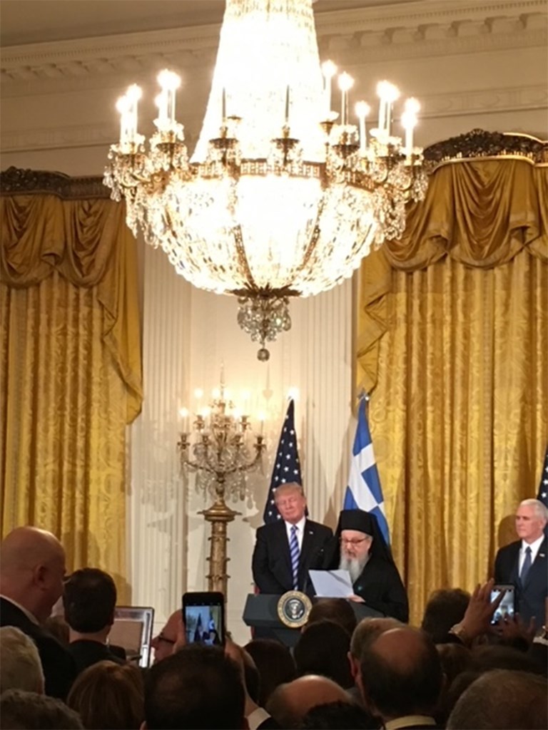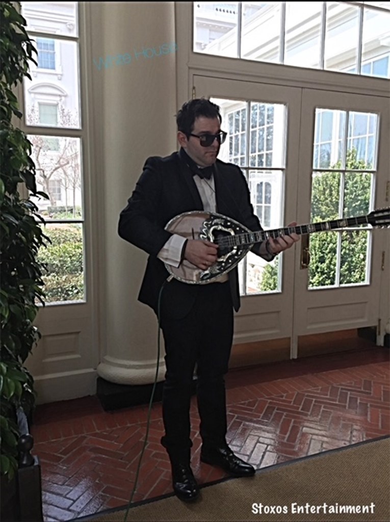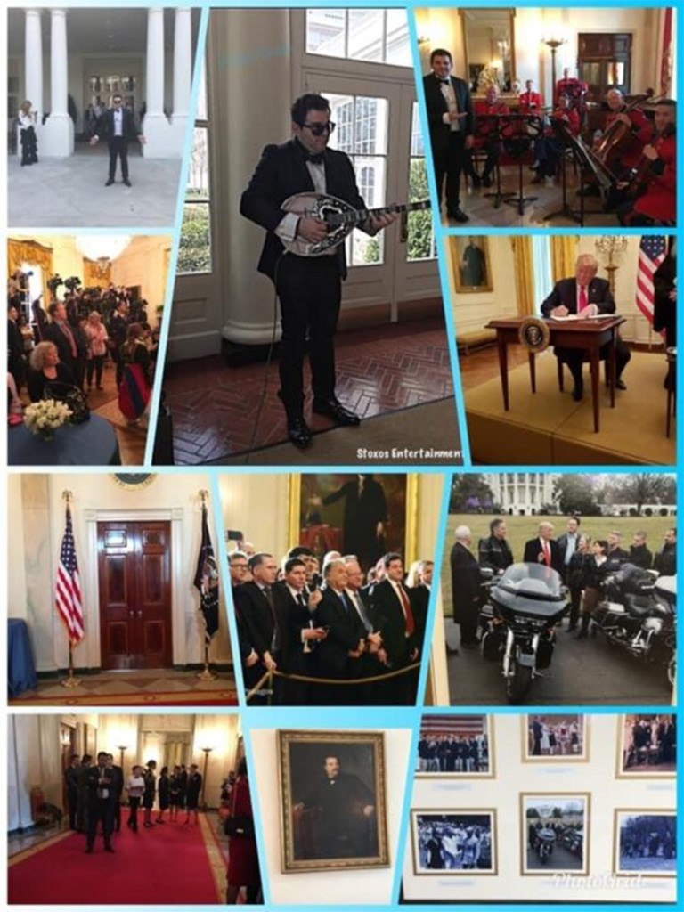 Η φήμη του Έλληνα σολίστ, δεν άργησε να φτάσει, μέχρι και στα αυτιά του, Ντόναλντ Τράμπ, δίνοντάς του, το βήμα, στις 15 Οκτωβρίου 2017, να μπει στον Λευκό Οίκο, και με αφορμή μία μεγάλη γιορτή της Αρχιεπισκοπής, με καλεσμένους 300 επίσημους από την Ελλάδα,  να επιλεγεί μεταξύ 100 μουσικών, για να ηχήσει τις ελληνικές νότες του μπουζουκιού, μυώντας και τους Αμερικανούς πολιτικούς και επιχειρηματίες, στο αυθεντικό ελληνικό γλέντι.