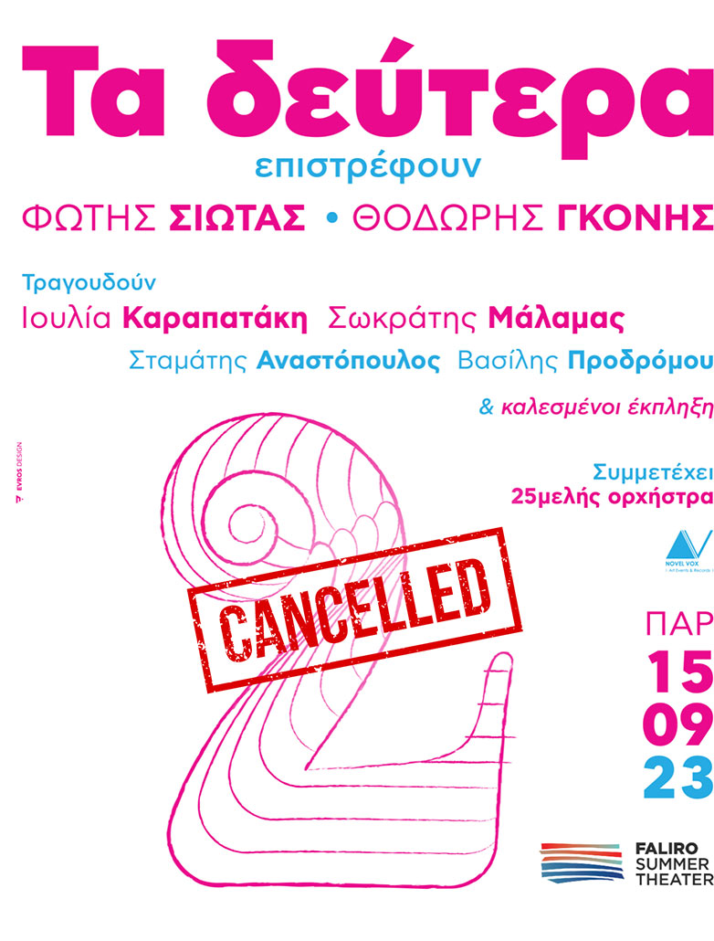 Ακυρώνεται η συναυλία του Φώτη Σιώτα και του Θοδωρή Γκόνη την Παρασκευή 15 Σεπτεμβρίου στο Faliro Summer Theater.
