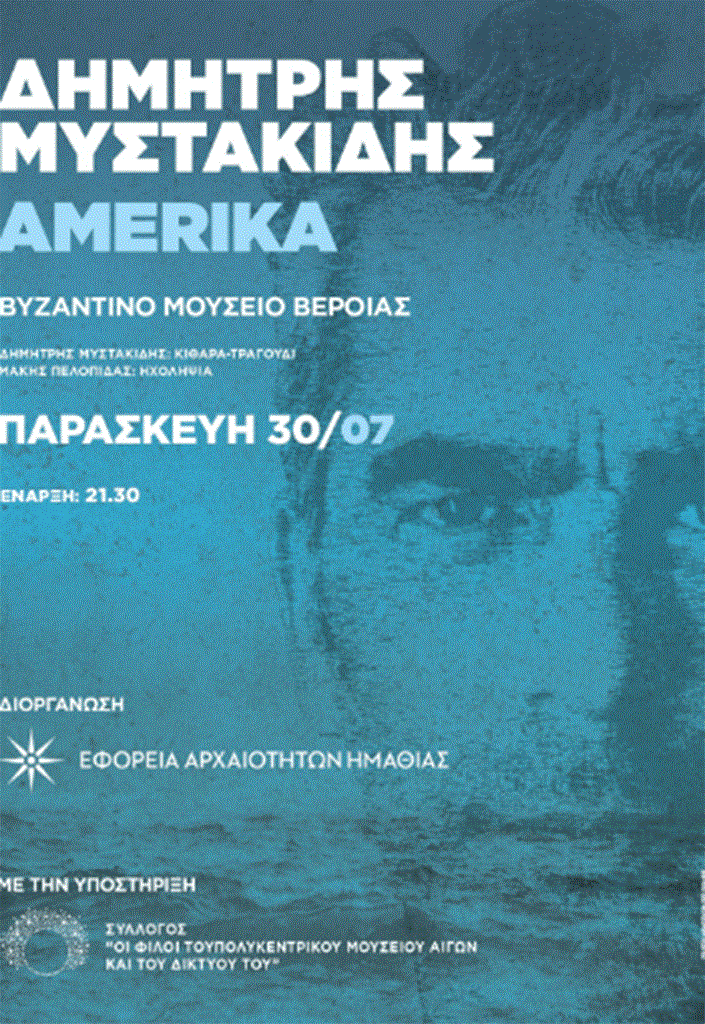 Σόλο μουσική παράσταση του δεξιοτέχνη της λαϊκής κιθάρας Δημήτρη Μυστακίδη, με ρεμπέτικα τραγούδια που κυκλοφόρησαν και παίχτηκαν ζωντανά μόνο στην Αμερική από Έλληνες μετανάστες μουσικούς, φιλοξενεί την Παρασκευή 30 Ιουλίου 2021 το Βυζαντινό Μουσείο Βέροιας.