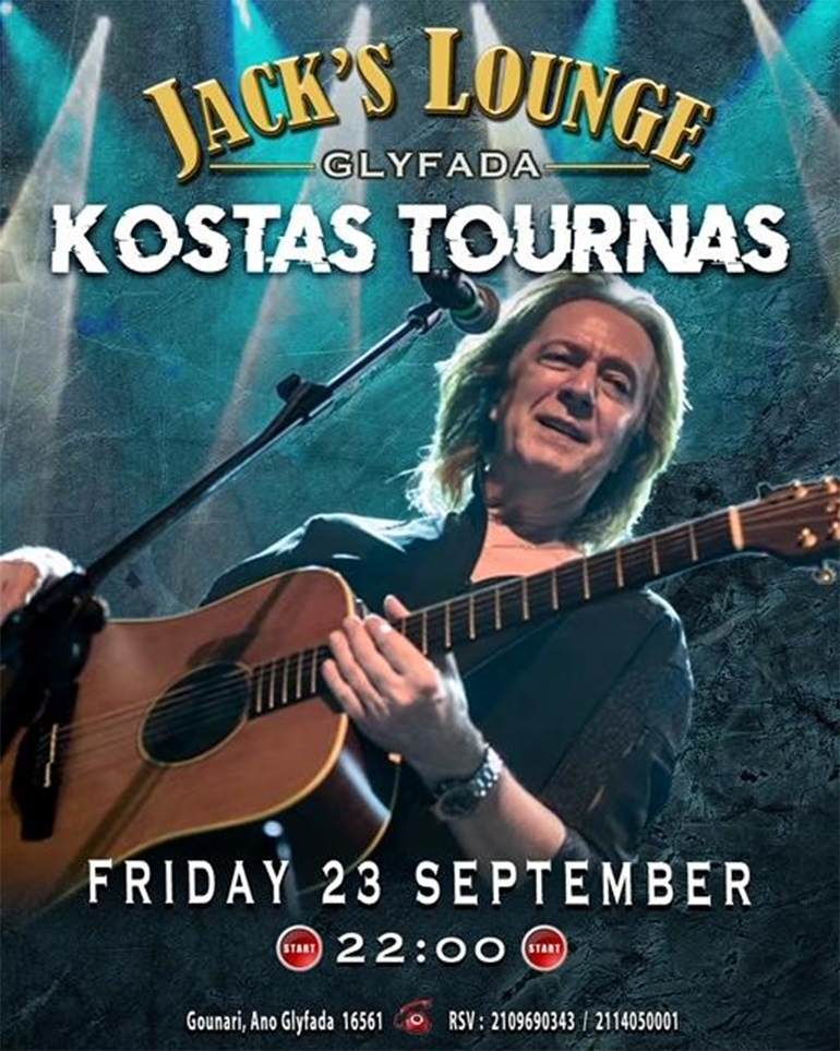 Την Παρασκευή 23 Σεπτεμβρίου ο Κώστας Τουρνάς μας περιμένει στο Jack΄s Lounge, Γούναρη 85, Άνω Γλυφάδα