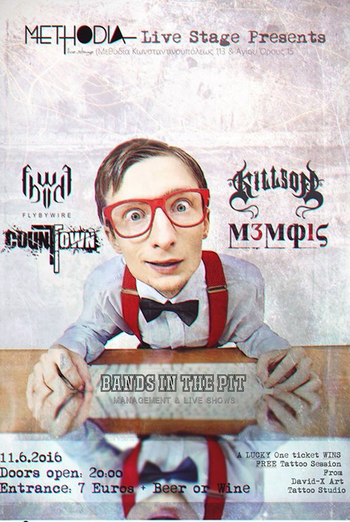 Την Εντεκάτη του Ιούνη στον Πολυχώρο «Μεθοδία» (Κωνσταντινουπόλεως 113 και Αγίου Όρους 15 Αθήνα, Βοτανικός) οι Countown θα αποδείξουν για ακόμα μια φορά πως το stage δεν τους χωράει και θα σπάσει στους ρυθμούς του Album τους Μουσική Πορνεία με κομμάτια όπως «Δικαστής της Λογικής» και «Φτάνει ως εδώ», οι FlyByWire θα σε ταρακουνήσουν με τα Grooves του τελευταίου τους single «Χαμένος» και με τα γνωστά τους hit «Εξίσωση» και «Μη αναστρέψιμος», οι Μέμφις για πρώτη φορά στην Αθήνα έρχονται «φορτωμένοι» με το δίσκο «Όπως αλλάζουν οι εποχές» και με δυο νέα δυνατά single «Οι φίλοι μου» και «Μόνο για μένα» να μας τα κεράσουν με τον μοναδικό τους τρόπο, οι Killson για Τρίτη φορά στην Αθήνα θα συνεχίσουν να δημιουργούν Headbangers σε κάθε γωνιά της με τον βαρύ και ασήκωτο δίσκο του «In Limbo» με κομμάτια όπως «Sane» και «G-Loc».