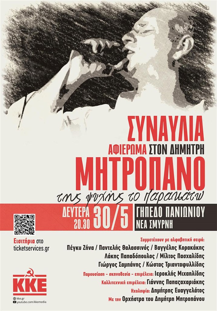 (Τιμή εισιτηρίου 12 ευρώ. Προπώληση εισιτηρίων ηλεκτρονικά στην ticketservices.gr. Προσκλήσεις διατίθεται από τις Οργανώσεις του ΚΚΕ και της ΚΝΕ).